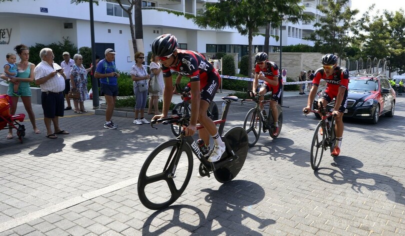 【8月23日 AFP】第70回ブエルタ・ア・エスパーニャ(70th Vuelta a Espana)は22日、第1ステージ(プエルト・バヌスからマルベーリャ、7.4キロメートル、チームタイムトライアル)が行われ、総合成績はニュートラルとなったものの、BMCレーシングチーム(BMC Racing Team)が最速タイムを記録した。
