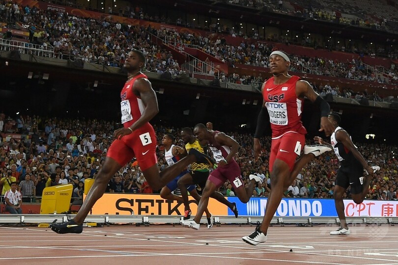 このほか、トレイボン・ブロメル(Trayvon Bromell、米国)、蘇炳添(Su Bingtian、中国)、ジミー・ヴィコ(Jimmy Vicaut、フランス)の3選手が9秒99のタイムで拾われ決勝進出が決まった。(c)AFP