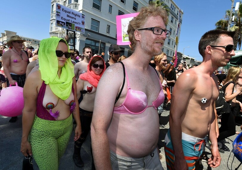 女性が「トップレス」になる権利訴え、米各地でパレード