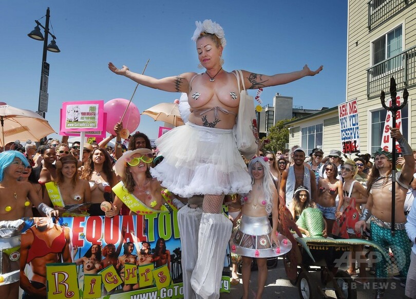 女性が「トップレス」になる権利訴え、米各地でパレード