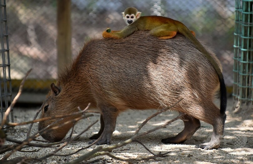 ニュース ライフ こぼれ話 「カピバラタクシー」運行中、お客はリスザル 埼玉 2015年8月24日 12:49 発信地:埼玉 [ アジア・オセアニア 埼玉 ] このニュースをシェア ‹ › ❮ 3/4 ❯ 埼玉県宮代町の東武動物公園で、背中にコモンリスザルを乗せるカピバラ(2015年8月22日撮影)。(c)AFP/KAZUHIRO NOGI 画像作成中 ! 【8月24日 AFP】埼玉県宮代町の東武動物公園(Tobu Zoo)で22日、背中にコモンリスザルを乗せるカピバラの姿が見られた。(c)AFP ライフ 一覧へ> メディア・報道関係・法人の方向け 写真・動画 購入のお問合せ>