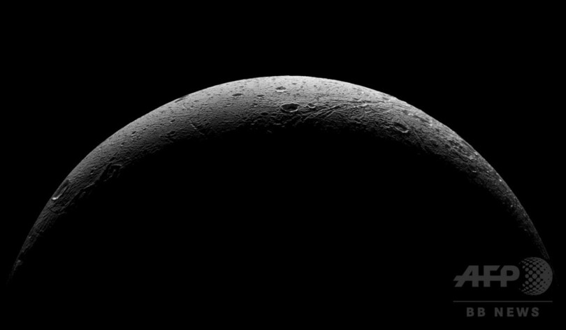 【8月24日 AFP】米航空宇宙局(NASA)は20日、土星の衛星「ディオネ(Dione)」の画像を公開した。一部画像には土星とその輪も背景に見える。画像は17日、土星探査機カッシーニ(Cassini)が、ディオネへの最後のフライバイ(接近通過)を行ったの際に撮影したもの。