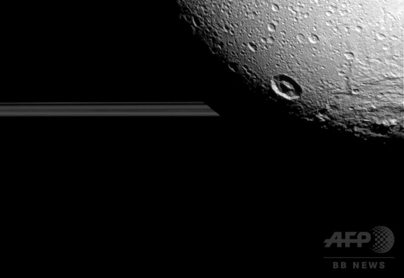 【8月24日 AFP】米航空宇宙局(NASA)は20日、土星の衛星「ディオネ(Dione)」の画像を公開した。一部画像には土星とその輪も背景に見える。画像は17日、土星探査機カッシーニ(Cassini)が、ディオネへの最後のフライバイ(接近通過)を行ったの際に撮影したもの。