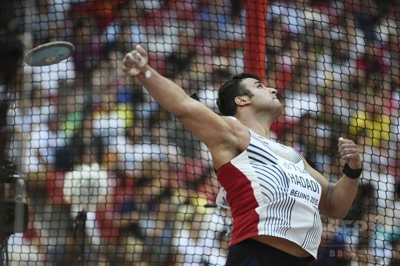 そして同日に行われた男子円盤投げ予選では、アジア王者3度の実績を持ち、ロンドン五輪銀メダリストのイサン・ハダディ(Ehsan Hadadi、イラン)がまさかの予選敗退に終わり、フィールドに崩れ落ちた。(c)AFP/Luke PHILLIPS