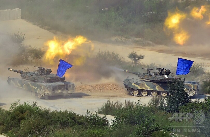 【8月28日 AFP】韓国軍と米軍は28日、南北軍事境界線に近い韓国・抱川(Pocheon)で、過去最大規模の合同実弾演習を実施した。