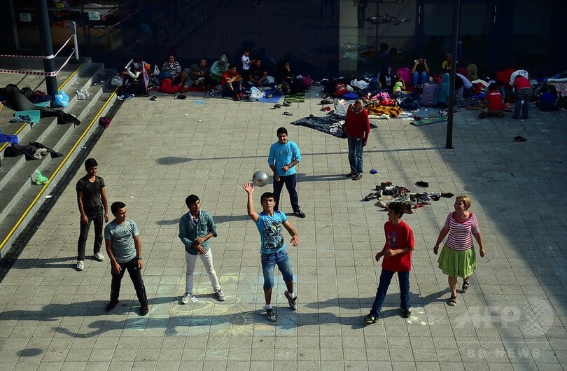 【8月30日 AFP】難民危機が直撃している欧州のハンガリーで、首都ブダペスト(Budapest)の鉄道駅が難民キャンプのような状態になりつつある。戦争や苦難を逃れてきた難民の家族たちが布などを敷いた上に座り込んでおり、乳児も含まれている。