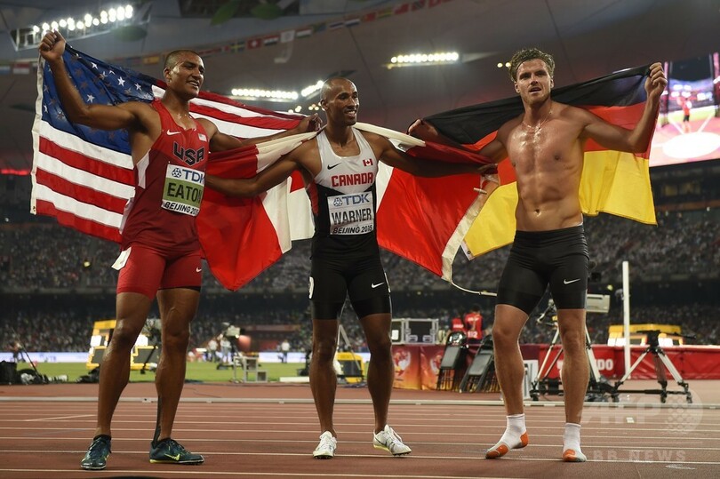 【8月30日 AFP】第15回世界陸上北京大会(15th IAAF World Championships in Athletics Beijing)は29日、男子十種競技の後半が行われ、米国のアシュトン・イートン(Ashton Eaton)が自身の世界記録を6点更新する9045点を記録し、大会連覇を飾った。