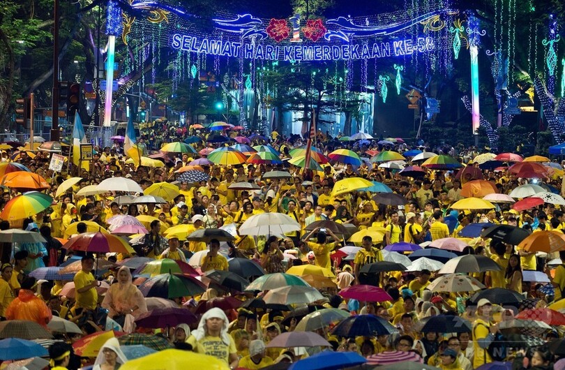 雨模様となった2日目のデモでは、クアラルンプール中心部が改革支持派のシンボルカラーの黄色で埋め尽くされた。
