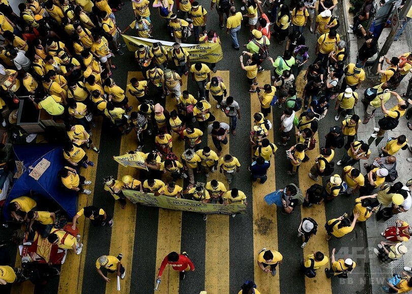 マレーシア首都が黄色に、2日連続の首相退陣要求デモ