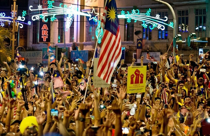 ナジブ首相は、個人口座に2013年以降およそ7億ドル(約850億円)の送金を受けていた疑惑を米紙ウォールストリート・ジャーナル(Wall Street Journal、WSJ)が先月報じて以来、厳しい退陣圧力にさらされている。首相は当初疑惑を否定していたが、その後、閣僚が中東からの「政治献金」だと認めていた。(c)AFP