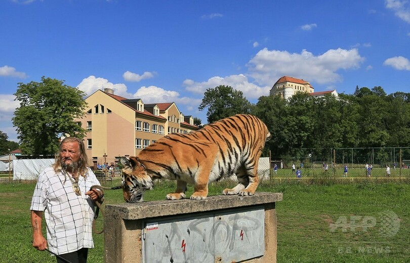 ニュース ライフ こぼれ話 散歩のお供はトラ、チェコ 2015年9月1日 8:54 発信地:レトビツェ/チェコ [ ヨーロッパ チェコ ] このニュースをシェア ‹ › ❮ 5/9 ❯ チェコ・レトビツェで、散歩をするサーカスのトラ「タイガ」と飼い主で調教師のヤロミール・ヨーさん(2015年8月30日撮影)。(c)AFP/RADEK MICA 画像作成中 ! 【9月1日 AFP】チェコのレトビツェ(Letovice)で8月30日、サーカスのトラ「タイガ(Taiga)」が飼い主で調教師のヤロミール・ヨー(Jaromir Joo)さんと散歩する姿が見られた。(c)AFP ライフ 一覧へ> メディア・報道関係・法人の方向け 写真・動画 購入のお問合せ>