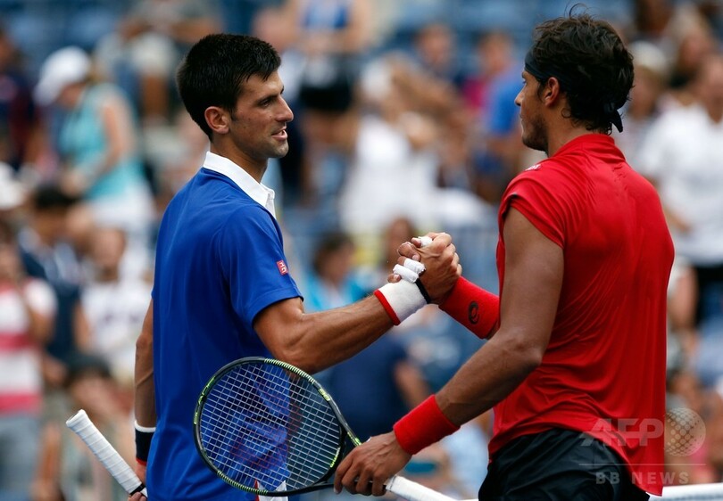 ジョコビッチは、順当に勝ち進めば準決勝で第4シードの錦織圭(Kei Nishikori)と対戦することになっていたものの、前回大会ファイナリストの錦織は同日、4-6、6-3、6-4、6-7、4-6でブノワ・ペール(Benoit Paire、フランス)に敗れて大会から姿を消している。(c)AFP/Jim SLATER