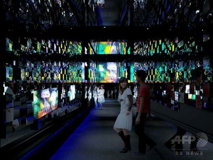 会期中は、壁と天井に約5,000枚の鏡を敷き詰めた「クラゲ万華鏡トンネル」内にある8つのクラゲ水槽や壁面に、蜷川氏が街中で撮影した花や人の雑踏などが投影される。作品はすべて新作で、昼と夜の2バージョン。昼は南国の花、海、空、夜は東京の夜景、高速道路、「東京スカイツリー」や渋谷のスクランブル交差点などの写真や動画となっている。浮遊するクラゲが様々な蜷川作品で変化し、まるで海の中を漂っているような体験ができるアート空間だ。