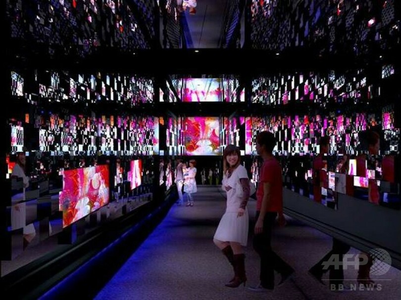 会期中は、壁と天井に約5,000枚の鏡を敷き詰めた「クラゲ万華鏡トンネル」内にある8つのクラゲ水槽や壁面に、蜷川氏が街中で撮影した花や人の雑踏などが投影される。作品はすべて新作で、昼と夜の2バージョン。昼は南国の花、海、空、夜は東京の夜景、高速道路、「東京スカイツリー」や渋谷のスクランブル交差点などの写真や動画となっている。浮遊するクラゲが様々な蜷川作品で変化し、まるで海の中を漂っているような体験ができるアート空間だ。