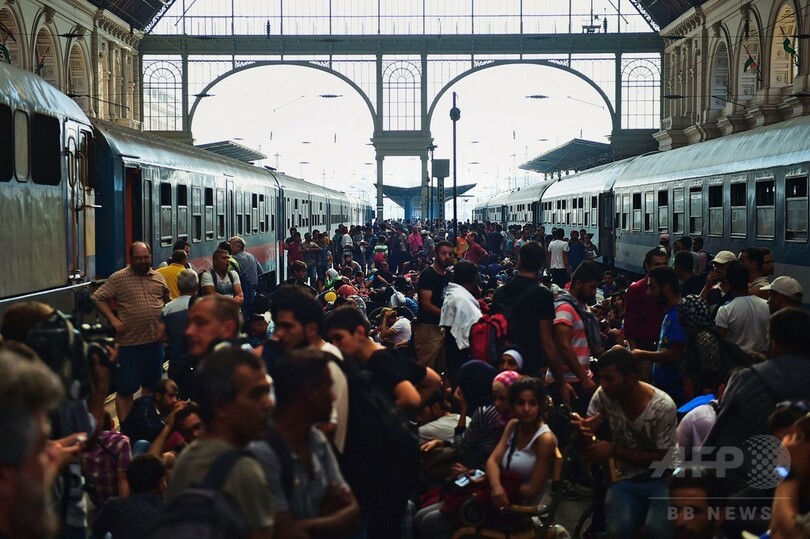 今年8月だけで主にシリアやイラク、アフガニスタンからやって来た約5万人が欧州連合(EU)加盟国であるハンガリーに入国している。その多くが西欧、特にドイツを目指している。8月31日には、3650人の移民が列車で隣国オーストリアの首都ウィーン(Vienna)に到着した。(c)AFP
