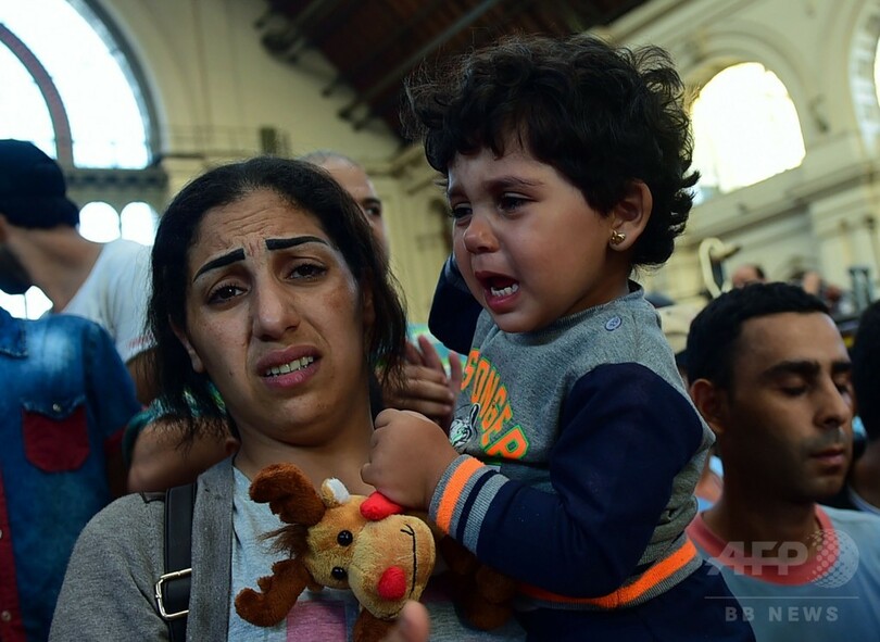 今年8月だけで主にシリアやイラク、アフガニスタンからやって来た約5万人が欧州連合(EU)加盟国であるハンガリーに入国している。その多くが西欧、特にドイツを目指している。8月31日には、3650人の移民が列車で隣国オーストリアの首都ウィーン(Vienna)に到着した。(c)AFP