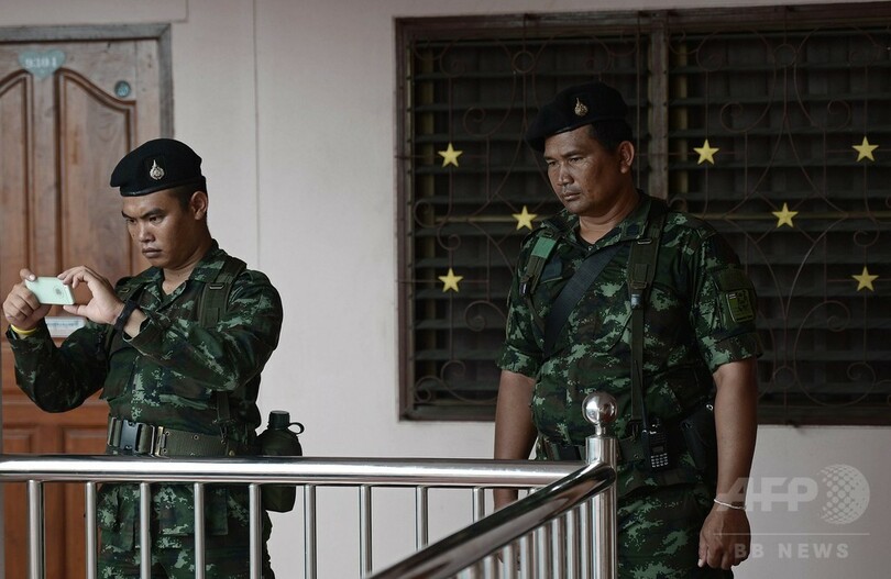 男が拘束された検問所は、タイとカンボジア間の密輸ルート上にある。首相は、男が逃走を図っていたのではないかと述べた。事件の動機はいまだ明らかになっていない。(c)AFP/Thanaporn PROMYAMYAI