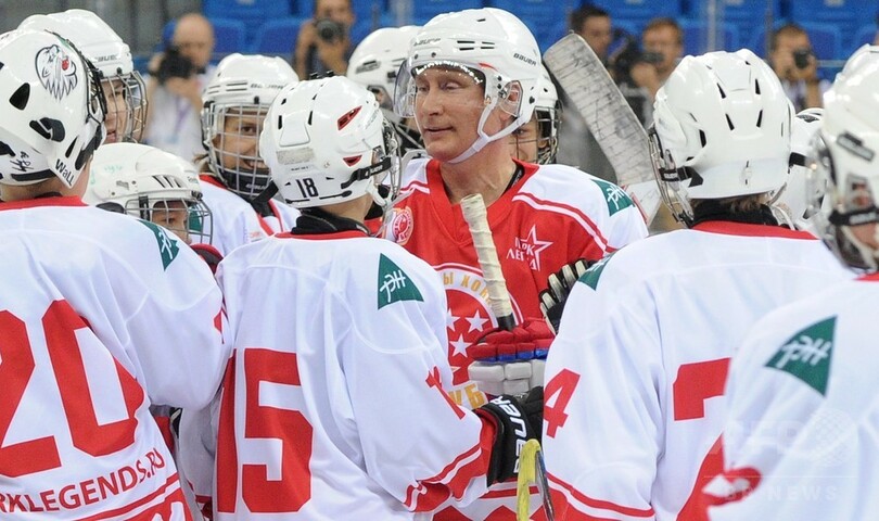 プーチン大統領、アイスホッケー親善試合でプレー ソチ