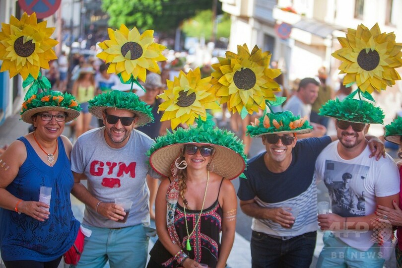 【9月2日 AFP】スペイン領カナリア(Canary)諸島のテネリフェ(Tenerife)島にあるテヒーナ(Tejina)で先月31日、「パメラ祭(the Fair of the Pamela)」が行われ、地元の人たちがこぞってお手製の派手な帽子をかぶり、お祭り気分を楽しんだ。(c)AFP