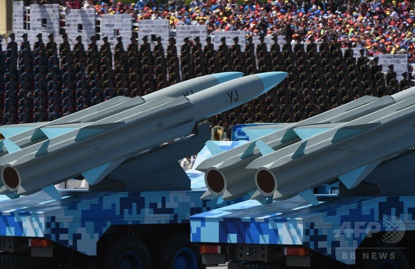 「DF-21D」が公開されるのは今回が初めて。軍事専門家は、太平洋上に展開する米空母を攻撃できる能力があり、太平洋における米国とのパワーバランスを塗り替える可能性があると指摘している。中国国営テレビの解説者は、「DF-21D」を「切り札」だと述べている。(c)AFP