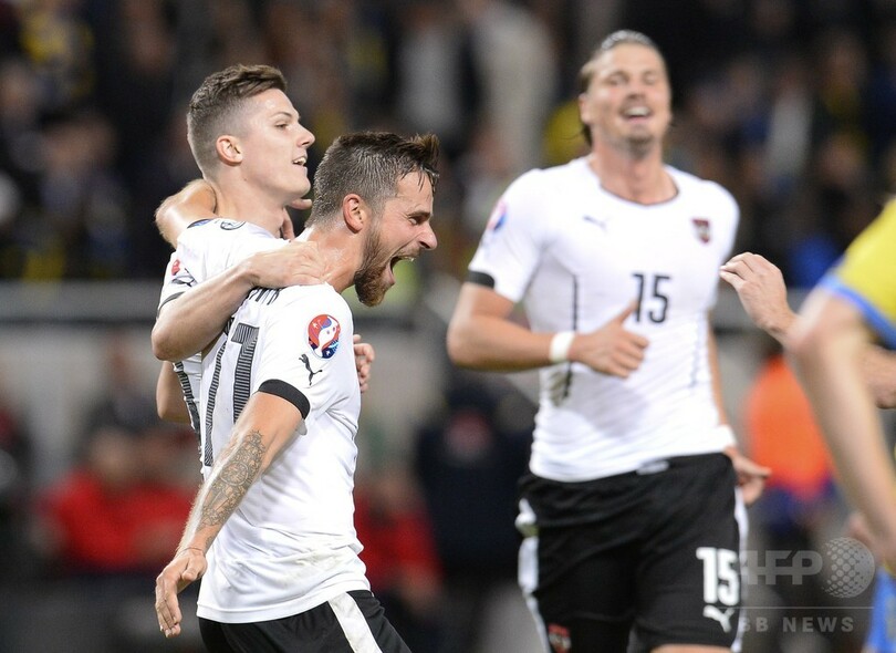 【9月9日 AFP】欧州選手権2016(UEFA Euro 2016)は8日、各地で予選が行われ、グループGのオーストリアは4-1でスウェーデンに快勝し、同国史上2度目となる欧州選手権の本大会出場を決めた。