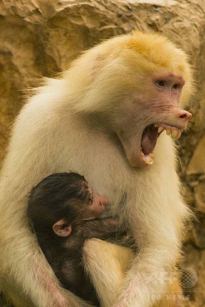【9月10日 AFP】イスラエル・テルアビブ(Tel Aviv)にある動物園「ラマト・ガン・サファリ(Ramat Gan Safari)」で9日、4歳になるマントヒヒの母親「サハラ」が、3週間前に生まれたばかりの赤ちゃんと戯れる様子がみられた。同園でサハラのような明るい毛色のヒヒが出産したのは、今回が初めて。(c)AFP