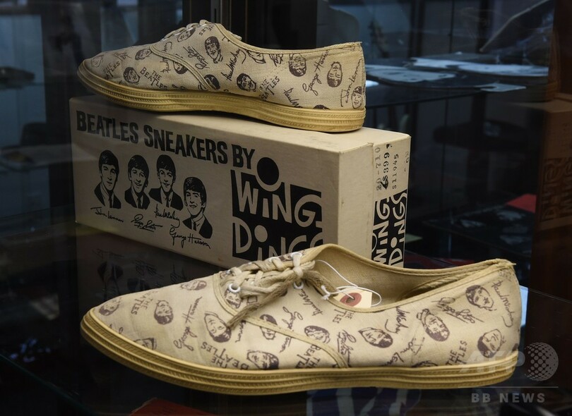スニーカーやフィギュアなどのビートルズ・グッズに加えて、リンゴ・スター(Ringo Starr)が1960年に独ハンブルク(Hamburg)から祖母に送ったはがきや、メンバーたちが1961年に「マイ・ボニー(My Bonnie)」のセッションを行った際、初めてサインしたレコーディング契約書なども含まれる。同契約書の推定落札価格は15万ドル(約1800万円)。(c)AFP