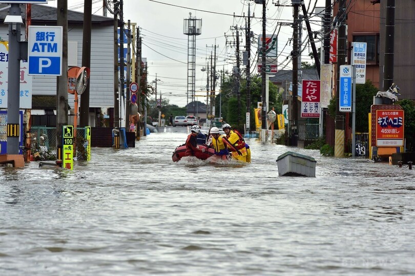 【9月10日 AFP】豪雨に見舞われた関東北部で10日、河川が氾濫して洪水が発生し、住宅や車が流されたり損傷を受けたりする被害が広がった。避難を命じられた住民は数万人に上り、消防隊員にゴムボートで救出される人もいた。
