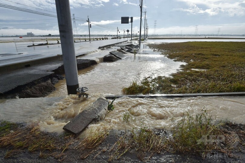 【9月11日 AFP】(写真追加)台風18号(アジア名:アータウ、Etau)の通過に伴う集中豪雨のため大規模な洪水に見舞われた関東地方北部では、11日の当局発表によると、これまでに3人の死亡が確認された。また、鬼怒川が氾濫した茨城県常総市で、少なくとも25人が行方不明となっているという。現在、数千人規模の救助隊が出動し、孤立した住民たちの救出活動に当たっている。(c)AFP/Quentin TYBERGHIEN