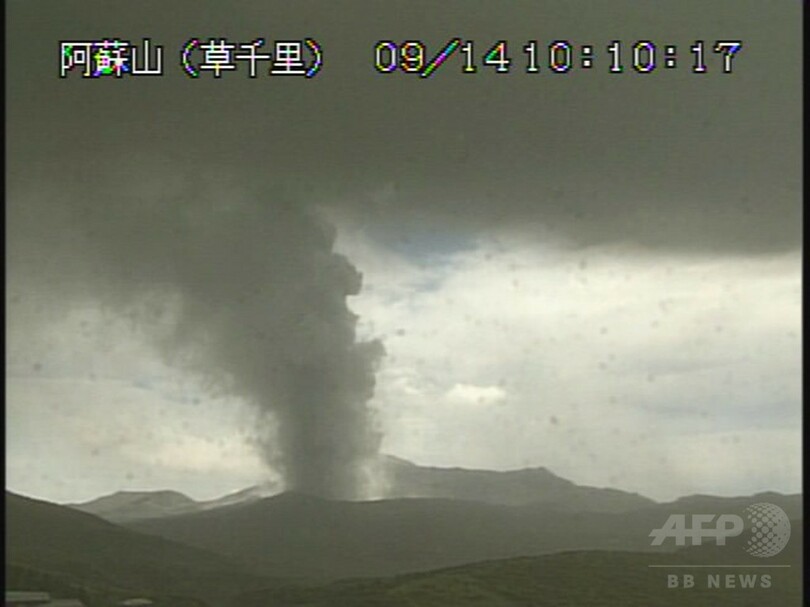 【9月14日 AFP】(一部更新)14日午前、熊本県の阿蘇山(Mount Aso)で噴火が発生した。火口からは噴煙が数千メートルまで噴き上がり、気象庁は噴火警戒レベルを3(入山規制)に引き上げた。