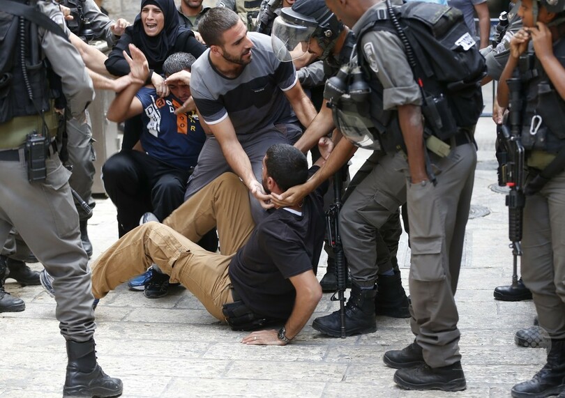 警察は声明で、覆面の若者たちがモスク内に逃げ込み、投石してきたと発表。モスク内でデモ参加者5人を逮捕し、ユダヤ教徒の聖地訪問は予定通り行われたと述べた。