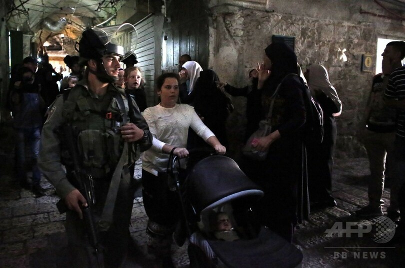 警察によると、イスラエルの治安部隊は13日と同様、聖地で新年を祝うユダヤ人に対するイスラム教徒の若者らの嫌がらせを防ぐため、早朝にモスク内に入ったという。その際、衝突が発生。イスラム教徒がバリケードを作ってモスク内に立てこもる一方、外では聖地への立ち入りをめぐって抗議行動が起きた。