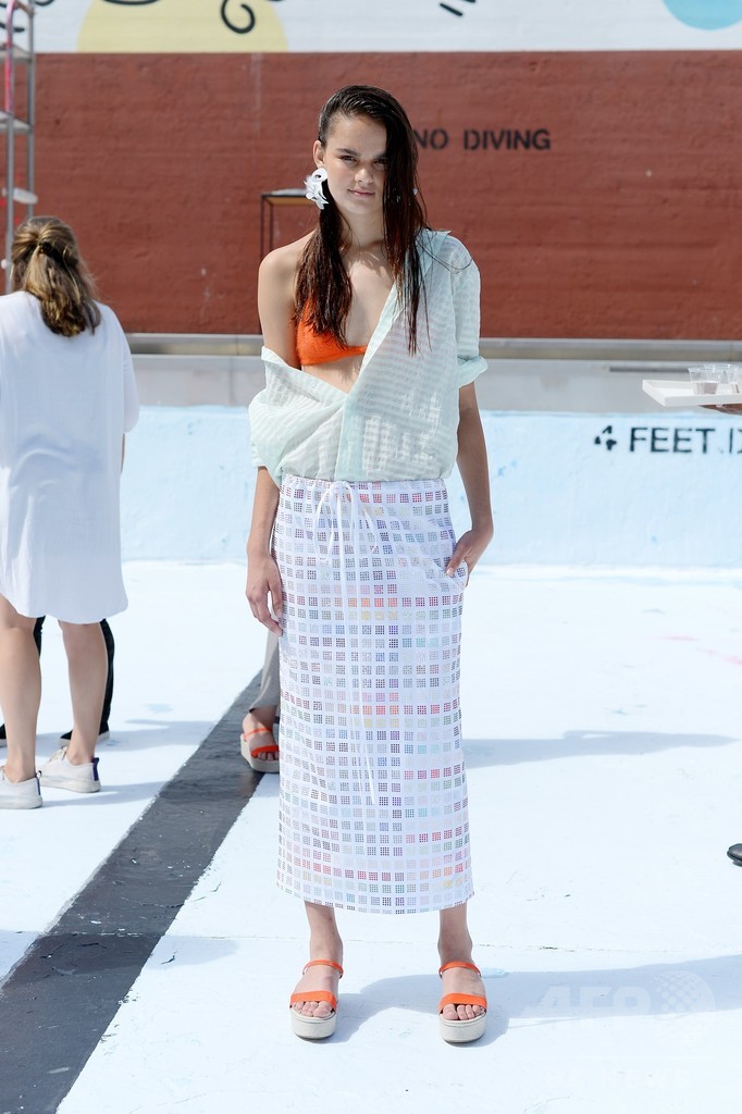 ドレスやロングスカート、ワイドパンツなど、ニューヨークファッションウィークで発表されたロージーのコレクションには、本人のDNAが表現されている。シンプルで色は控えめ、どれだけの犠牲を払っても目立とうという気負いがない。(c)AFP/Thomas Urbain