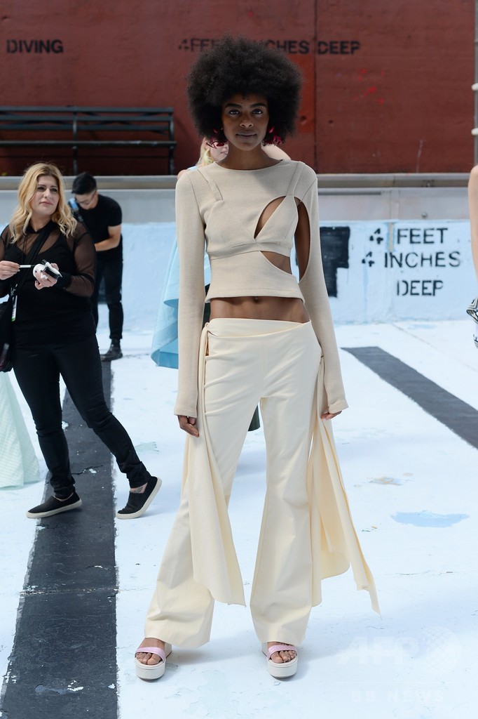 ドレスやロングスカート、ワイドパンツなど、ニューヨークファッションウィークで発表されたロージーのコレクションには、本人のDNAが表現されている。シンプルで色は控えめ、どれだけの犠牲を払っても目立とうという気負いがない。(c)AFP/Thomas Urbain