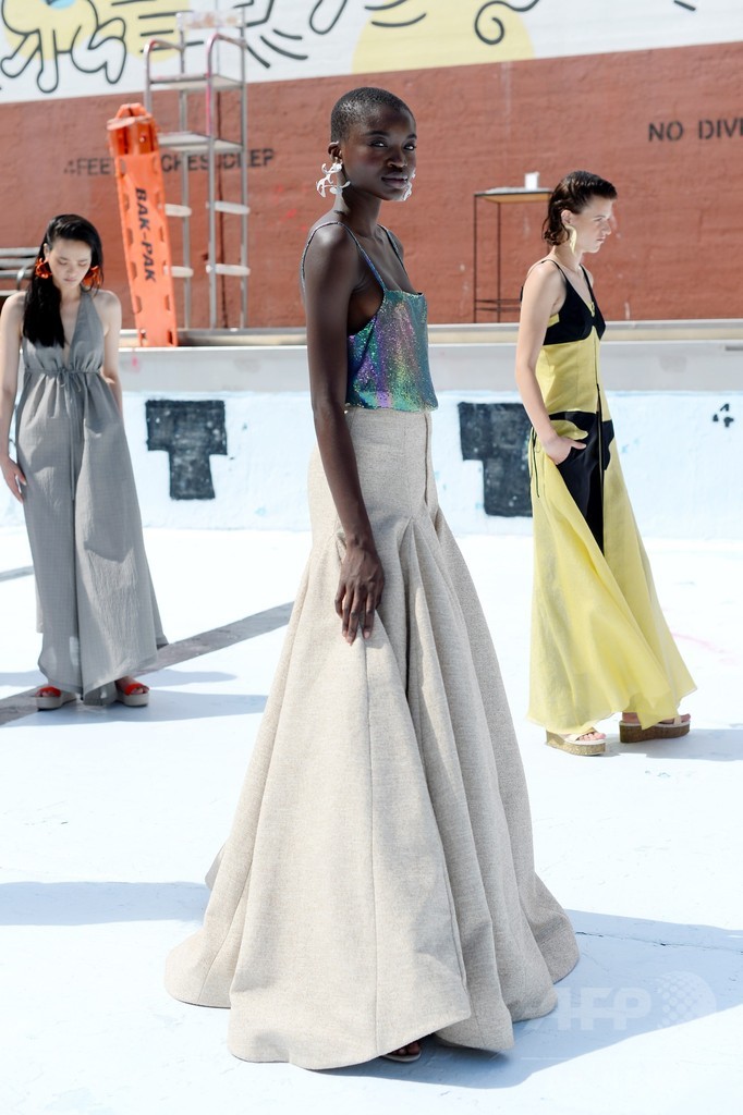 ドレスやロングスカート、ワイドパンツなど、ニューヨークファッションウィークで発表されたロージーのコレクションには、本人のDNAが表現されている。シンプルで色は控えめ、どれだけの犠牲を払っても目立とうという気負いがない。(c)AFP/Thomas Urbain