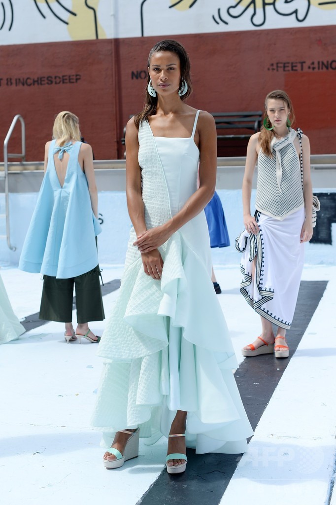 ドレスやロングスカート、ワイドパンツなど、ニューヨークファッションウィークで発表されたロージーのコレクションには、本人のDNAが表現されている。シンプルで色は控えめ、どれだけの犠牲を払っても目立とうという気負いがない。(c)AFP/Thomas Urbain