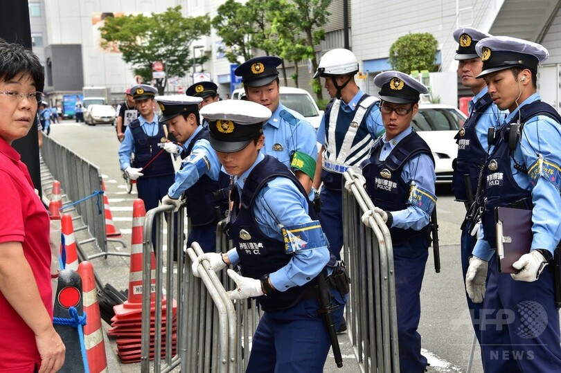 【9月16日 AFP】(一部更新、写真追加)横浜市で16日、安全保障関連法案に関する地方公聴会が行われ、会場前には安倍晋三(Shinzo Abe)首相に抗議するプラカードを掲げる人たちが集まった。