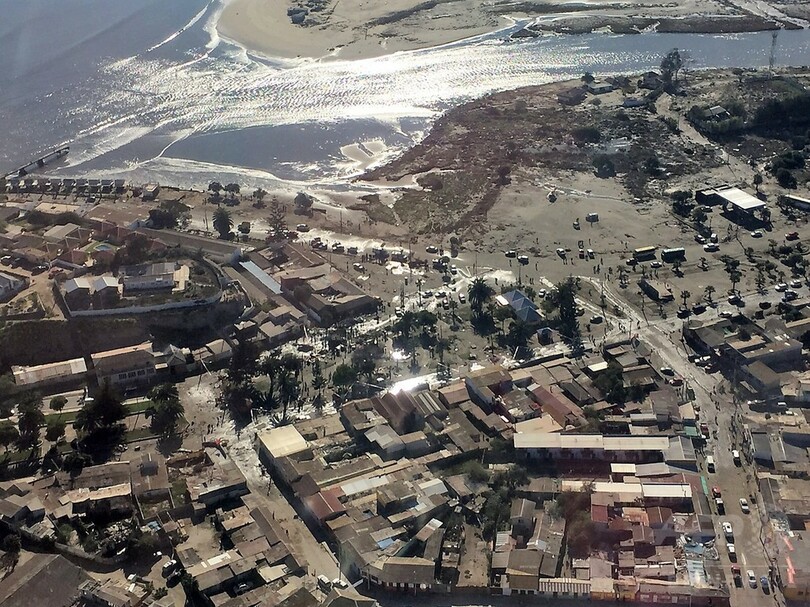 地震から数時間後には、コキンボ(Coquimbo)州各地の沿岸を最大4.5メートルの津波が襲い、港の広範囲が損傷。中でも被害が大きかった漁村のトンゴイ(Tongoy)では、海岸通り全体が破壊されている様子が地元テレビによって伝えられている。また、観光地バルパライソ(Valparaiso)の港も2メートルの津波に襲われた。