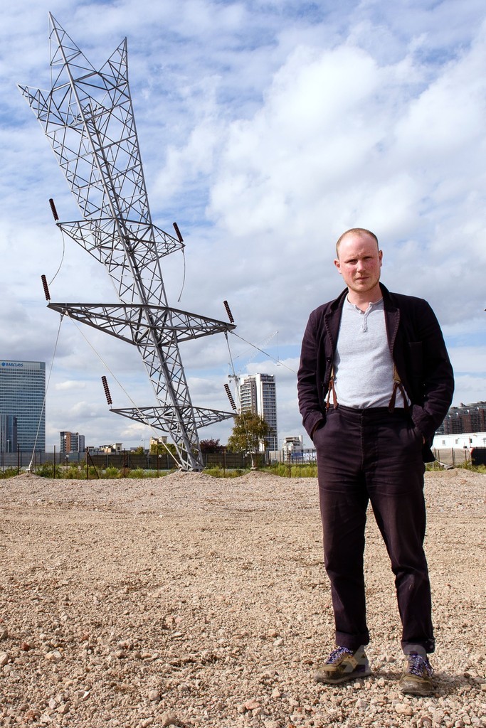 鉄塔を上下逆さにひっくり返した外観のこの作品は、高さ35メートルで、ロンドン東部のウオーターフロント再開発地区、カナリーワーフ(Canary Wharf)からもその姿を目にすることができるという。(c)AFP