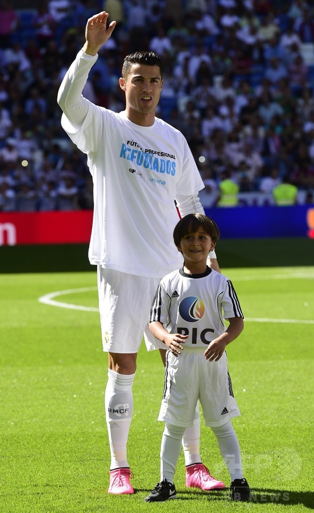 またこの試合の前には、ハンガリーの女性カメラマンに足を引っ掛けられて転倒する場面が世界的に報じられ話題となったシリア難民のオサマ・アブドル・モフセン(Osama Abdul Mohsen)さんの息子のザイド(Zaid Mohsen)君が、レアルのクリスティアーノ・ロナウド(Cristiano Ronaldo)と手をつないでピッチに入場した。(c)AFP