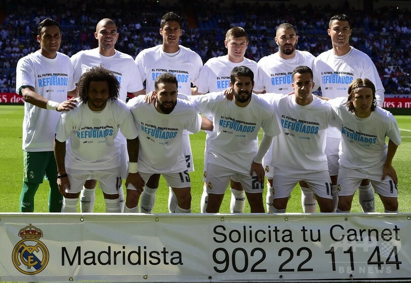 またこの試合の前には、ハンガリーの女性カメラマンに足を引っ掛けられて転倒する場面が世界的に報じられ話題となったシリア難民のオサマ・アブドル・モフセン(Osama Abdul Mohsen)さんの息子のザイド(Zaid Mohsen)君が、レアルのクリスティアーノ・ロナウド(Cristiano Ronaldo)と手をつないでピッチに入場した。(c)AFP