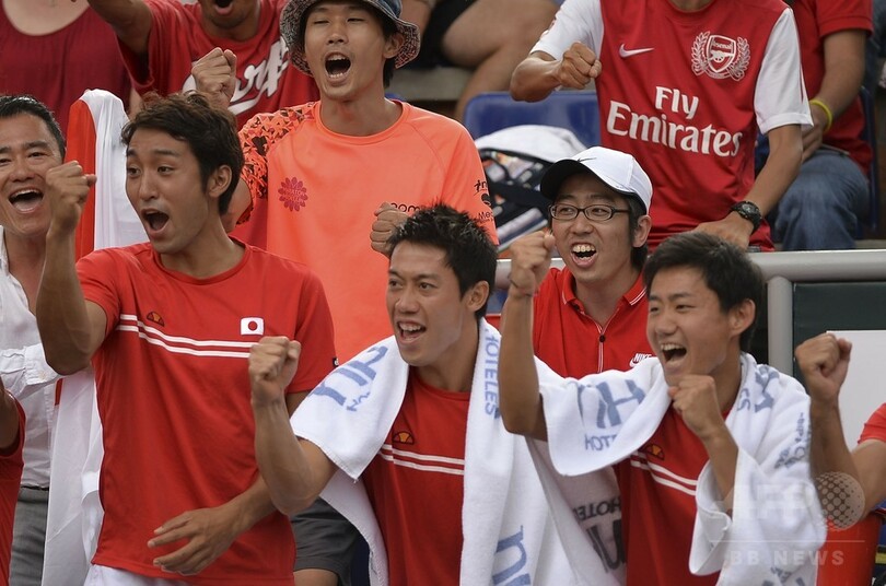 前日のダブルスに敗れ、1勝2敗と後がない状況に立たされていた日本だが、第4試合に出場した錦織が、6-4、6-2、7-6でコロンビアのサンティアゴ・ヒラルド(Santiago Giraldo)を下し望みをつなぐと、第5試合に出場したダニエルが、7-6、6-3、6-2でアレハンドロ・ファリャ(Alejandro Falla)に勝利し、3勝2敗で3年連続のワールドグループ残留を決めた。(c)AFP