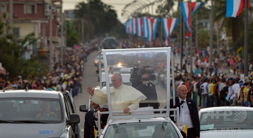 【9月20日 AFP】ローマ・カトリック教会のフランシスコ(Francis)法王は19日、キューバと米国への歴訪を開始した。最初の訪問地であるキューバの首都ハバナ(Havana)に到着した法王は、米・キューバ両国に始まったばかりの関係改善を進めるよう促した。