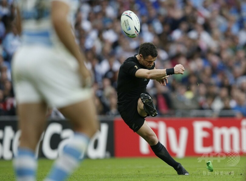 ニュージーランドはその後サム・ケイン(Sam Cane)もトライを決め、ダン・カーター(Dan Carter)が両トライのコンバージョンを決めると、4本のペナルティーゴールを蹴り込んでいる。(c)AFP