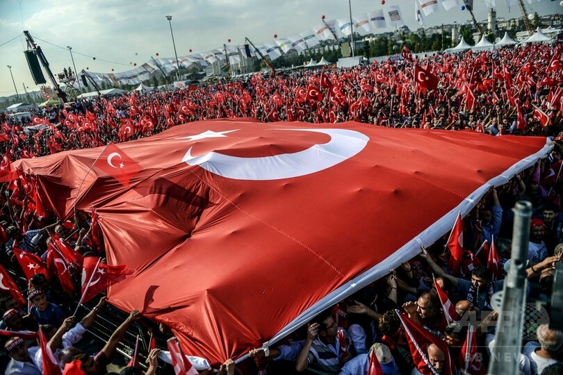 赤を基調としたトルコ国旗が揺れ動く中に政党や政派のシンボルは見あたらなかったが、参加者の多くはエルドアン大統領率いるイスラム系の公正発展党(Justice and Development Party、AKP)に対する熱烈な支持を表明した。