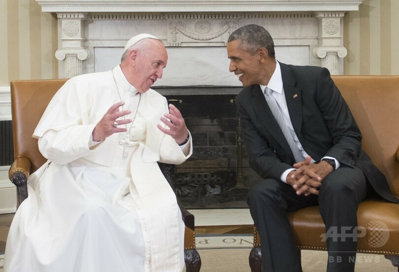 【9月24日 AFP】訪米中のローマ・カトリック教会のフランシスコ(Francis)法王は23日、首都ワシントン(Washington D.C.)のホワイトハウス(White House)を訪問し、バラク・オバマ(Barack Obama)大統領と共に、移民と気候変動の問題に関する行動を訴えた。