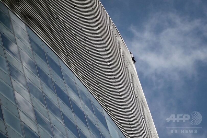 【9月25日 AFP】世界各地の高層建築に登り「スパイダーマン(Spiderman)」の異名を持つ仏人フリークライマー、アラン・ロベール(Alain Robert)さんが23日、仏パリ(Paris)近郊のビジネス地区ラ・デファンス(La Defense)にある高層ビルに登った。