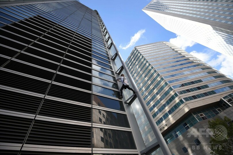 【9月25日 AFP】世界各地の高層建築に登り「スパイダーマン(Spiderman)」の異名を持つ仏人フリークライマー、アラン・ロベール(Alain Robert)さんが23日、仏パリ(Paris)近郊のビジネス地区ラ・デファンス(La Defense)にある高層ビルに登った。