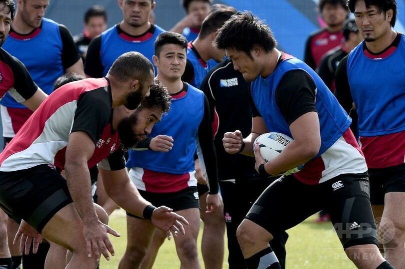 【9月26日 AFP】ラグビーW杯イングランド大会(Rugby World Cup 2015)に臨む日本代表は25日、イングランド(England)中部のウォリック(Warwick)でトレーニングを行った。日本は、プールBの第3戦となるサモア戦を10月3日に控えている。(c)AFP