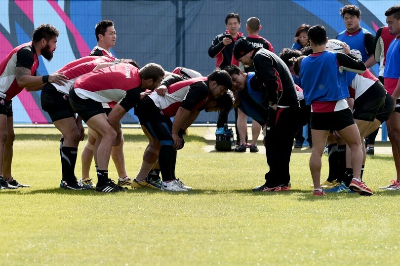 【9月26日 AFP】ラグビーW杯イングランド大会(Rugby World Cup 2015)に臨む日本代表は25日、イングランド(England)中部のウォリック(Warwick)でトレーニングを行った。日本は、プールBの第3戦となるサモア戦を10月3日に控えている。(c)AFP